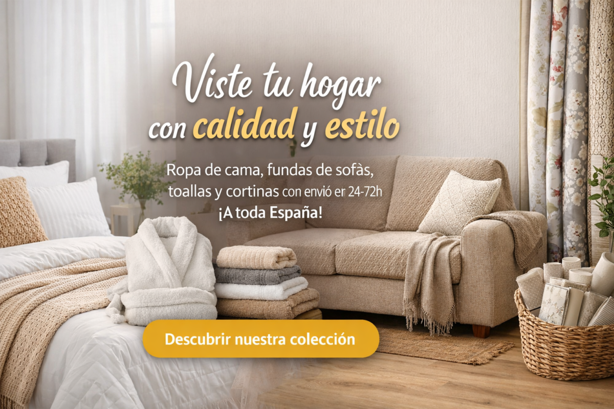 En nuestra tienda online encontrarás todo lo que necesitas para vestir tu casa: sábanas, cortinas, fundas de sofá, toallas, nórdicos, edredones, colchas, albornoces y mucho más.