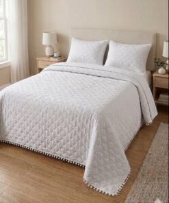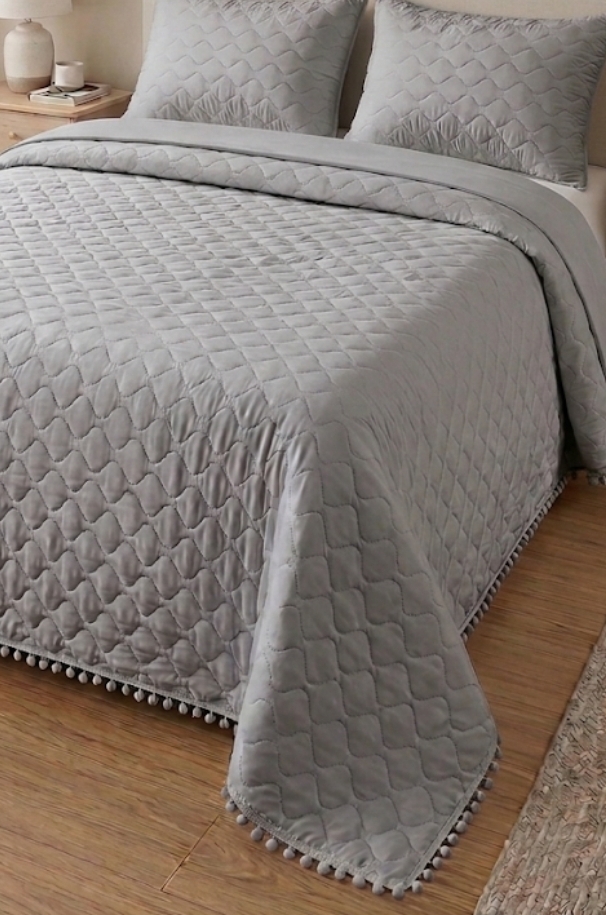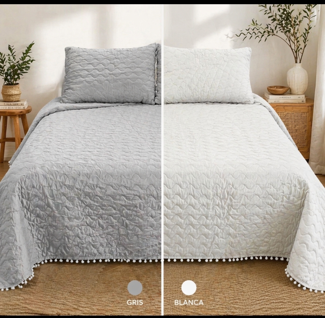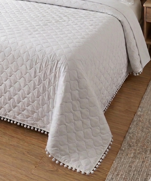 COLCHA BOUTI VERANO POMPONES BLANCO O GRIS