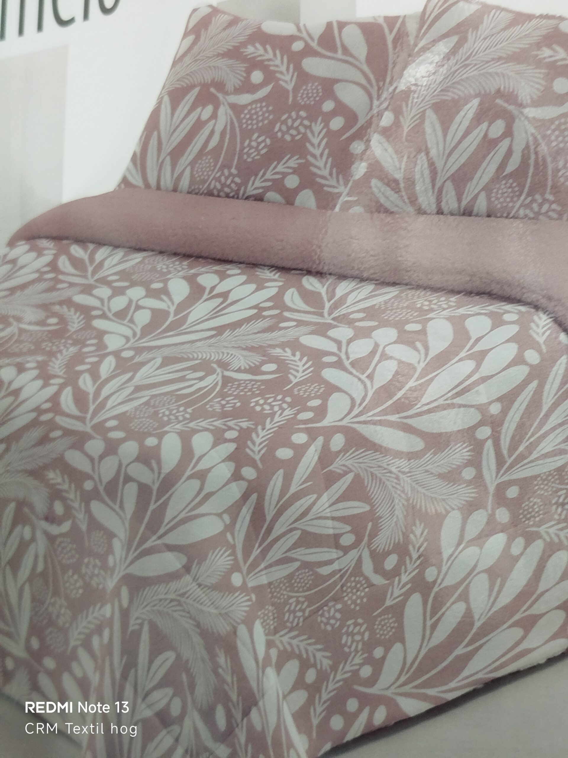 Edredón sherpa cama 150 rosa hojas