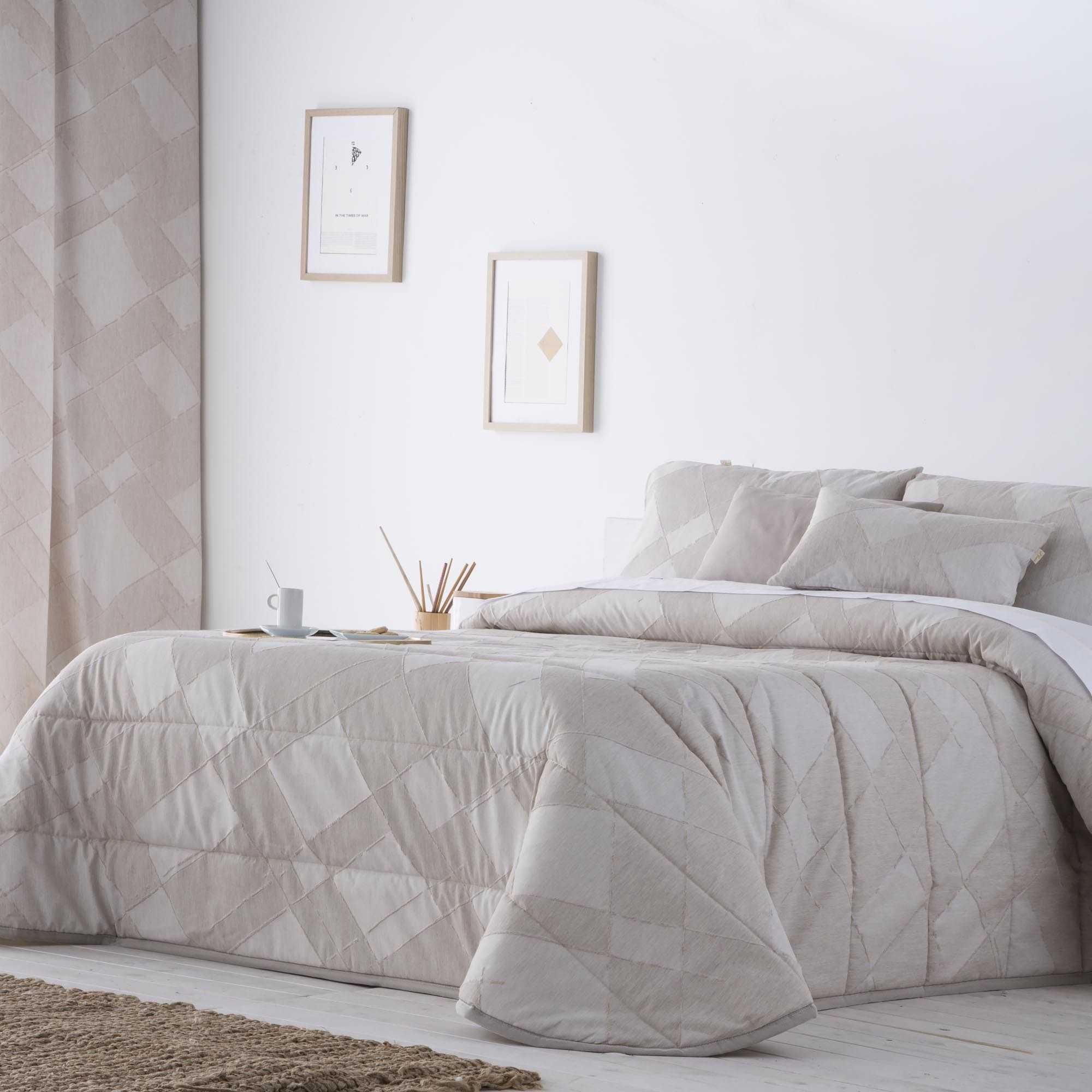 Moderno diseño geométrico en Tejido Jacquard formando cuadrados y rectángulos con diferentes tonalidades dentro de un mismo color. Tonos neutros y elegantes que combinarán a la perfección en tu dormitorio. Elige entre el gris claro, blanco, lino o maquillaje.Funda nórdica Fabricada en España de alta calidad, perfecta para darle un toque original a tu habitación.